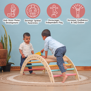 Encourage your child’s gross motor development, balance, and confidence through movement. The Pikler Arch helps kids from 9 months to 7 years explore safely, learn body control, and strengthen muscles — all while having fun!
