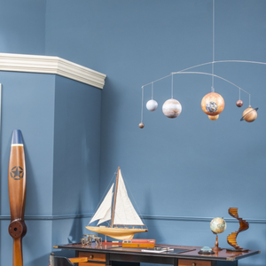 Bring the wonders of space into your home with this beautifully crafted Mobile Solar System. Made from wood, metal, and paper mache, it features a multi-colored design and floats freely, creating a stunning decorative display. Perfect for classrooms, bedrooms, or as a unique home decor piece.