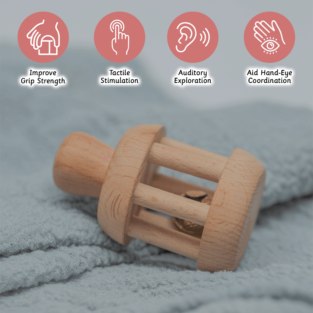 When your baby is reaching out and grasping the toy, their Fine motor skills are developed. When they rattle the toy, their sense of sound develops. Rattles are always amusing and fun for your little one.