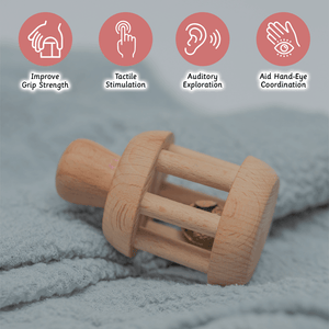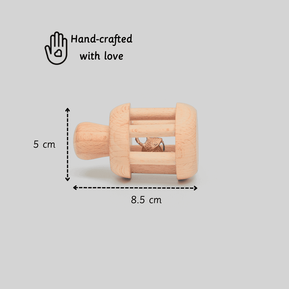 The tactile experience that a baby gets when feeling wood is important for their Sensorial development. Wooden rattles are long lasting. This naturally finished wooden rattle is a good Grasping aid and also can double as a Teether.