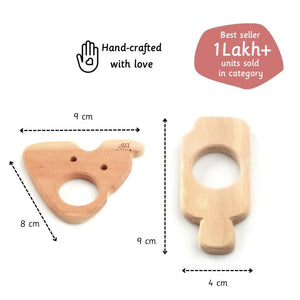 These wooden teethers, Made from Neem wood, are easy to grasp, are the best for your baby’s teething needs and sooth those aching gums. This will be the perfect first toy for your baby. Neem wood is also Antibacterial and Antifungal, adding extra benefits to your child’s play.