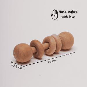 The tactile experience that a baby gets when feeling wood is important for their Sensorial development. Wooden rattles are long lasting. This naturally finished wooden rattle is a good Grasping aid and also can double as a Teether.