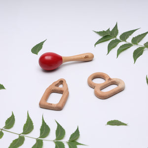 - These wooden teethers are made from Neem wood, that’s easy to grasp, is the best tool to suffice your baby’s teething needs and sooth those aching gums. This will be the perfect first toy for your baby. Neem wood is also Antibacterial and Antifungal, adding extra benefits to your child's play.