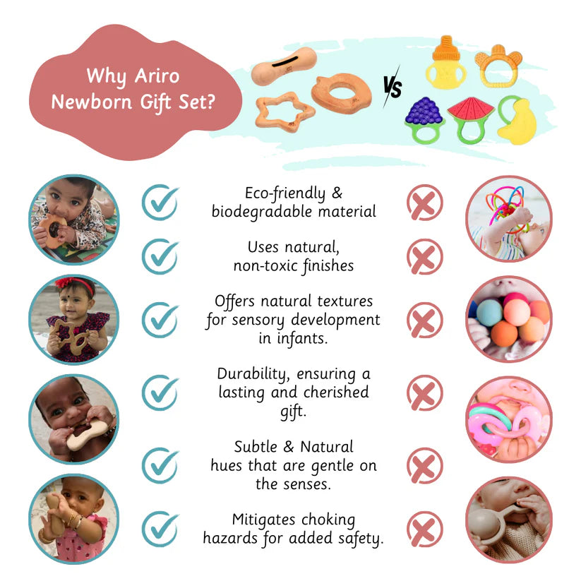 - Grasping wood helps the baby develop better motor skills and sensitivity. Ariro has combined the goodness of Neem with agile designing to bring about the finest teethers. It has all the goodness of Neem without its bitterness. Neem is antibacterial and antifungal, hence it requires less maintenance.