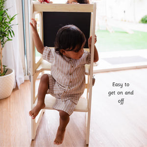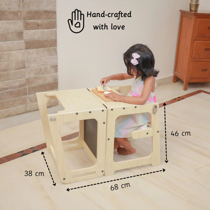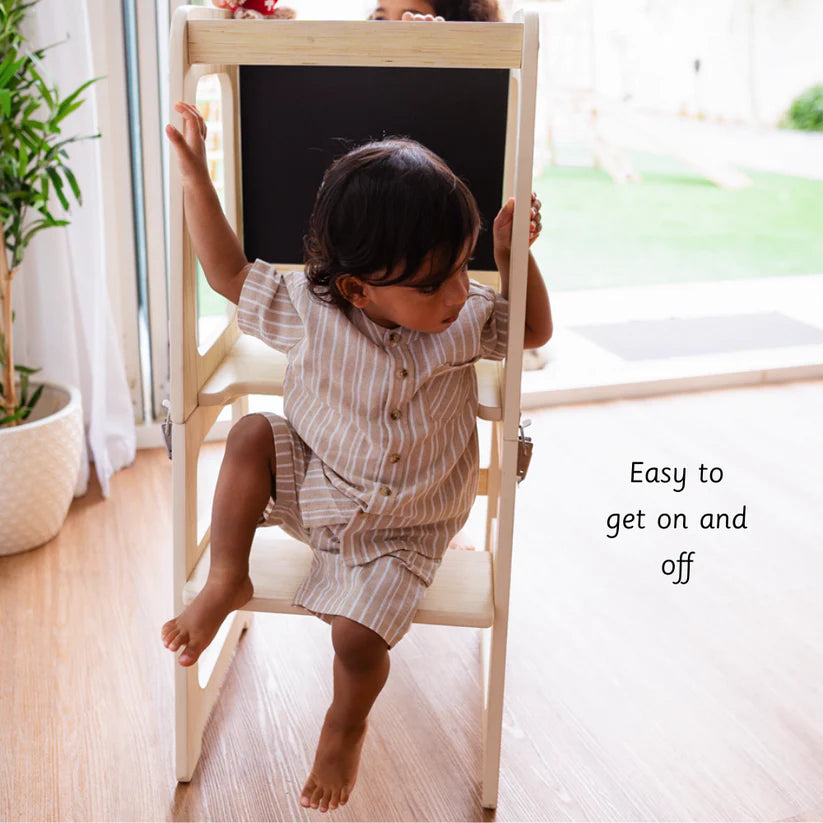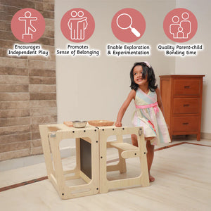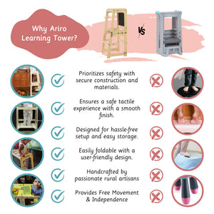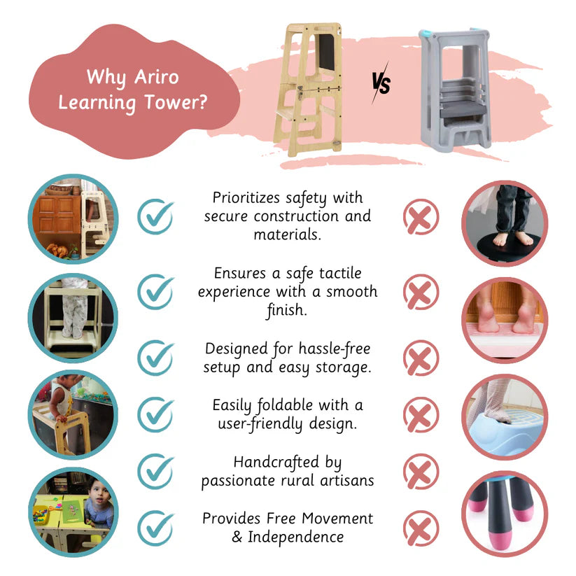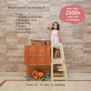 Learning tower is an aid that allows children to do activities like brushing, washing, assist in kitchen and counter activities independently
