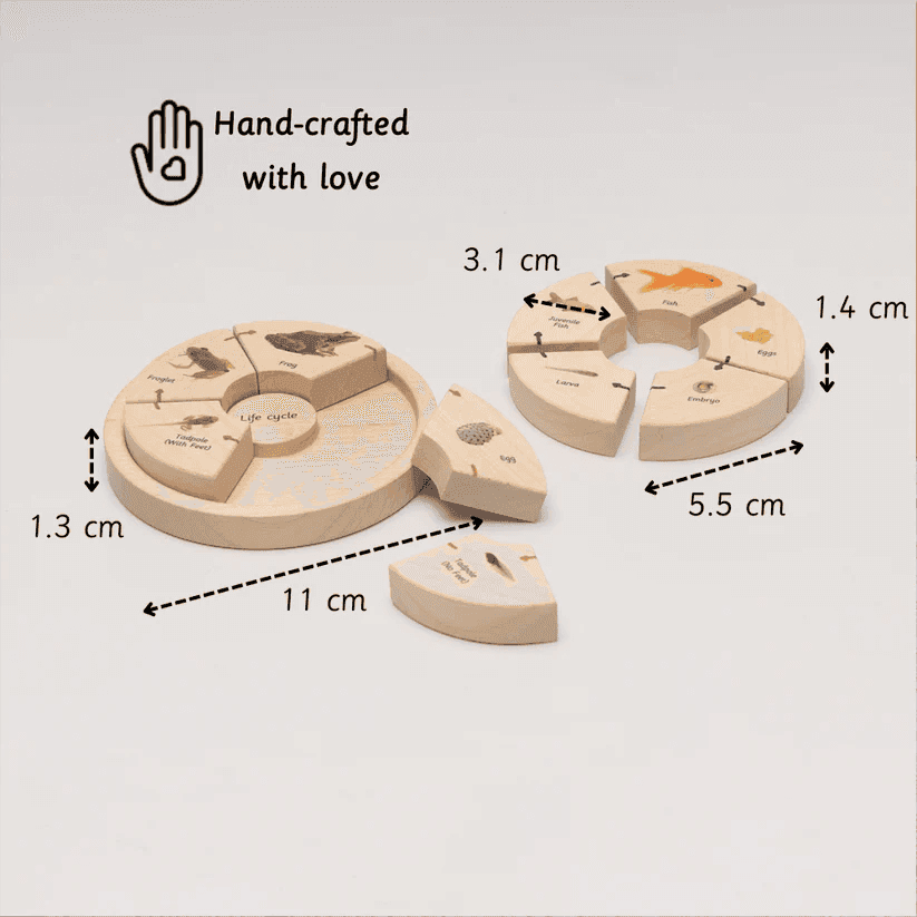 This puzzle shows the lifecycles of 4, Oviparous animals, animals that lay eggs to reproduce, opening a new horizon for your child’s cognitive development. They will start putting together the things they have been seeing in isolation around them, establishing the connections.