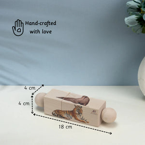 - Rotating Puzzle – Amphibians, Montessori puzzle is for kids of Age 18+ months. Its Dimension is 4 x 4 x 18 cm. The product is Made of Maple wood and is child safe.