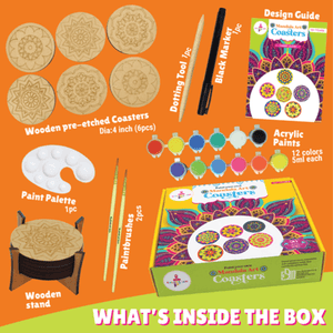 Deep dive into the world of Mandala art and explore the intricacy and vibrance of this art form. With a variety of colors to choose from, make some exotic mandalas on ready-to-paint coasters.