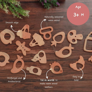 These wooden teethers, Made from Neem wood, are easy to grasp, are the best for your baby’s teething needs and sooth those aching gums. This will be the perfect first toy for your baby. Neem wood is also Antibacterial and Antifungal, adding extra benefits to your child’s play.
