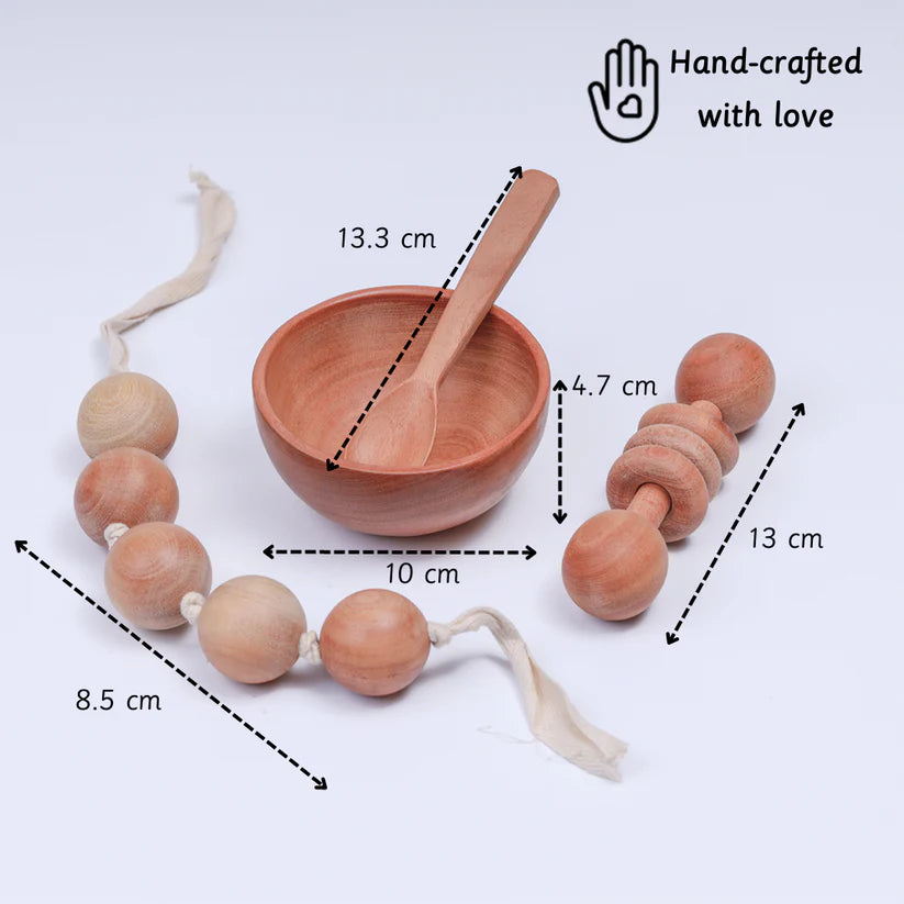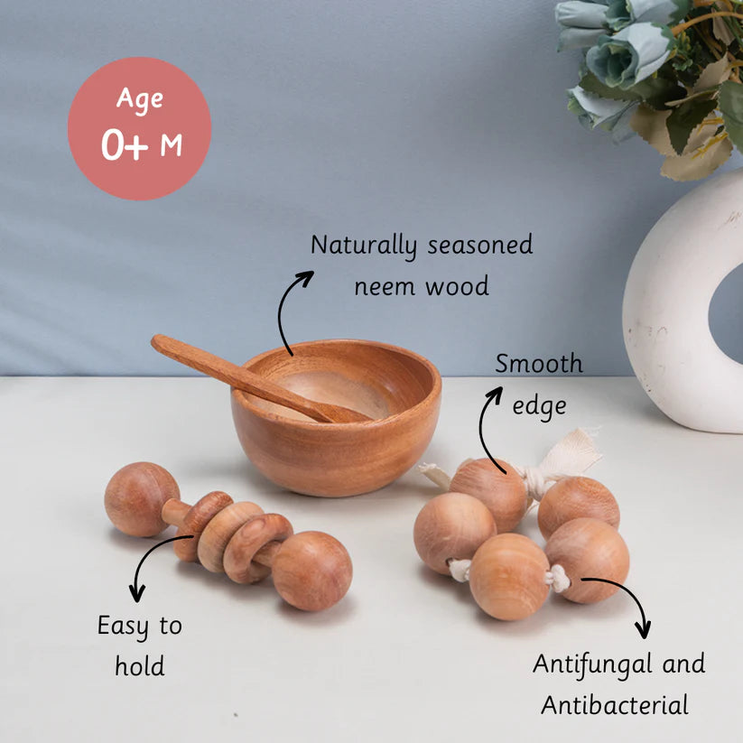 Weaning a baby is a significant milestone and a truly magical experience. To ensure maximum comfort and sensory pleasure, they require the appropriate utensils This chemical-free, naturally seasoned bowl of neem wood guarantees a secure start to the weaning process. Because it is the perfect size, babies can use it on their own when they are ready. You can use the bowl with or without the spoon.