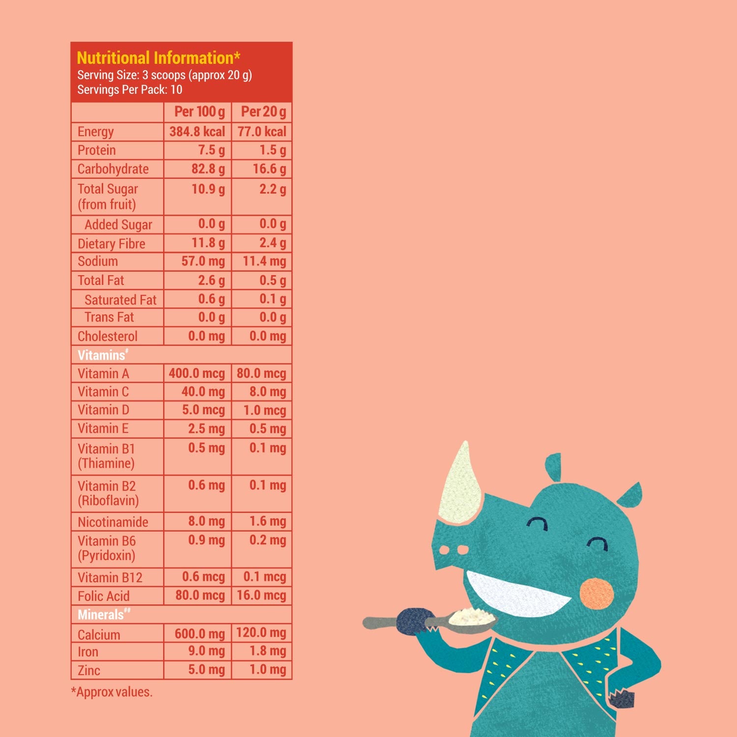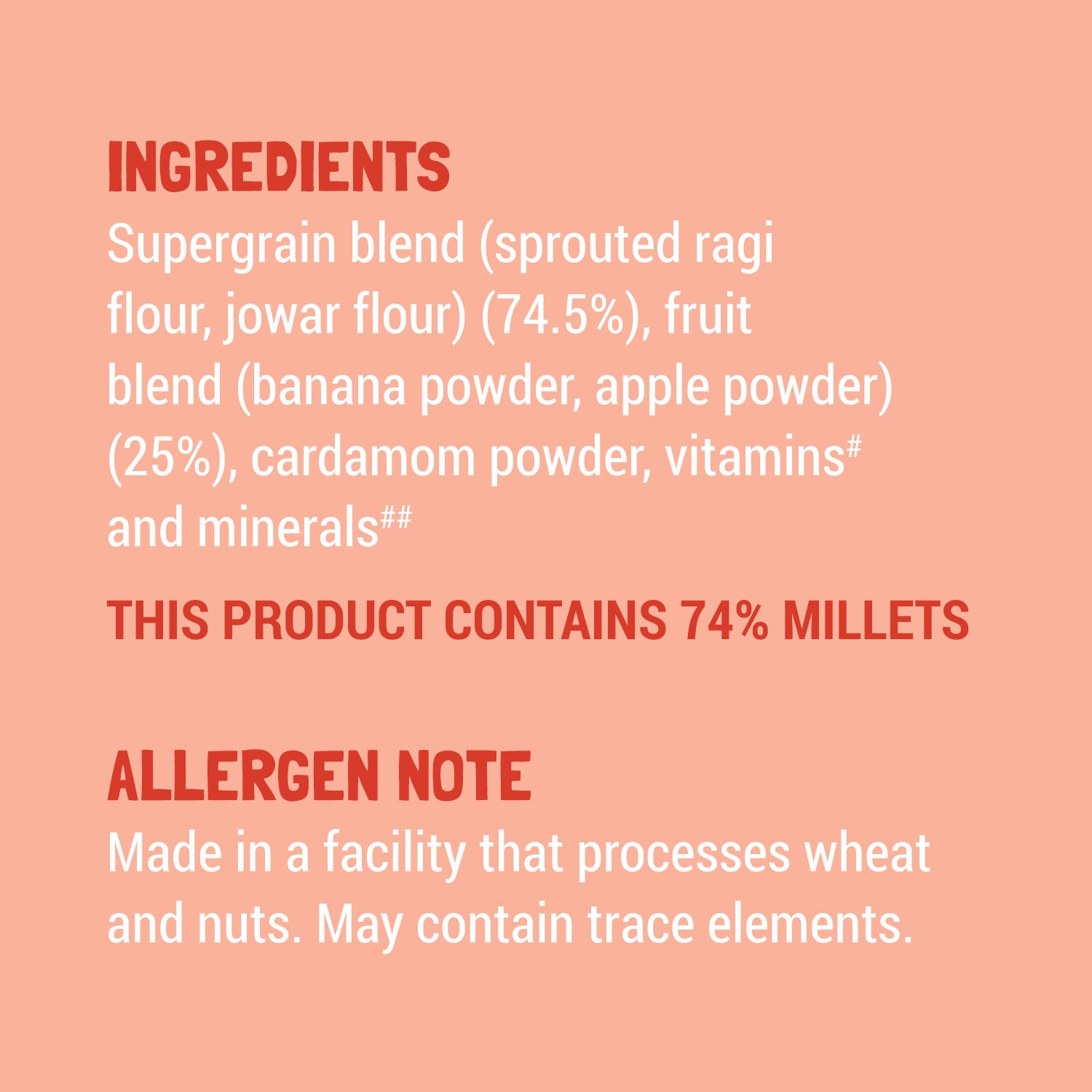 - Easy to digest food for your little one with the goodness of ragi, jowar, cardamom, and real fruits such as apple and banana.