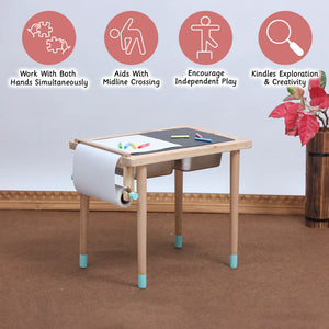 - Offers possibilities for the work of both hands simultaneously as most activities require the use of both hands at the same time. This will refine their movements.