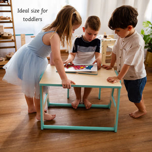 A child sized work table and chair provides children with the freedom to move their bodies and the furniture by themselves which further develops their self-confidence.