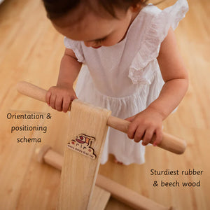 One of the important milestones for a child is walking. Providing the right support to achieve this is important. Ariro’s Push walker has been designed to support the child at their own pace and speed Made from sturdy rubber and beech wood, this ensures safety and support It not just aids walking but also supports Positioning, Orientation and Transport schema.